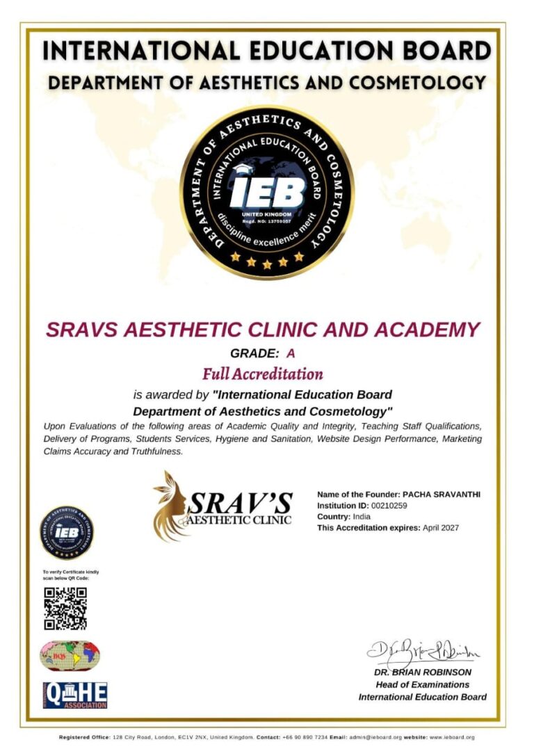 Founded by Dr. Sravanthi Pacha, a renowned specialist in Cosmetology and Trichology, Srav’s Aesthetic Academy stands as one of the best beauty academies in Nellore and South India.